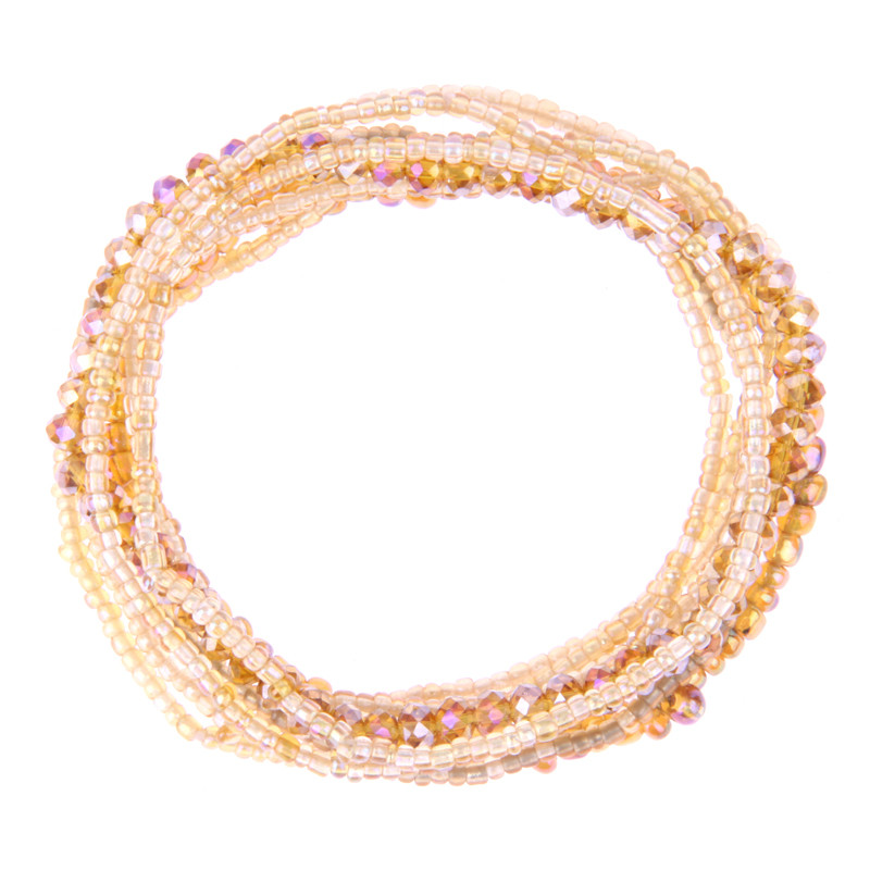 8 pc Set of Beaded Strand Bracelets in Gold Mix.