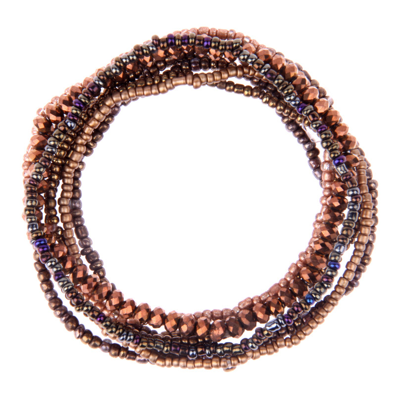 8 pc Set of Beaded Strand Bracelets in Metallic Brown Mix.