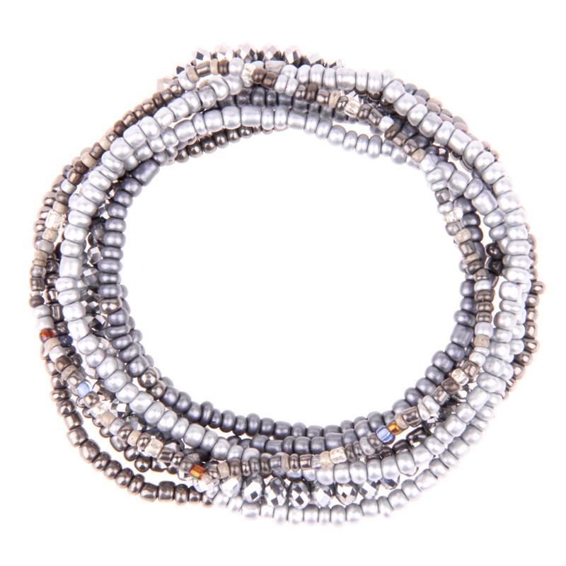 8 pc Set of Beaded Strand Bracelets in Pewter Mix.