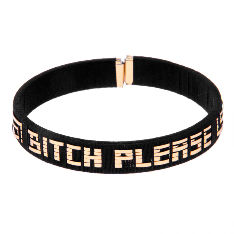 "BITCH PLEASE" Cuff in Black with Gold Letters.