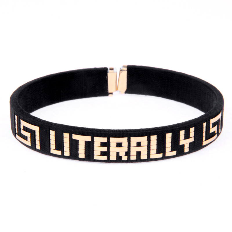 "LITERALLY" Cuff in Black with Gold Letters.