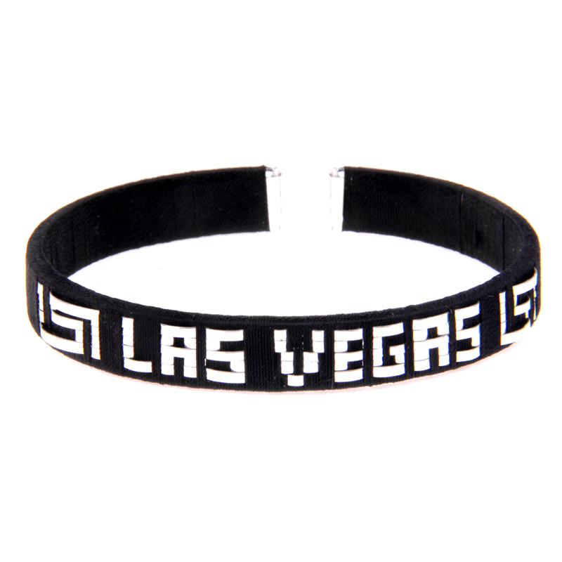 "LAS VEGAS" Cuff in Black with Silver Letters.