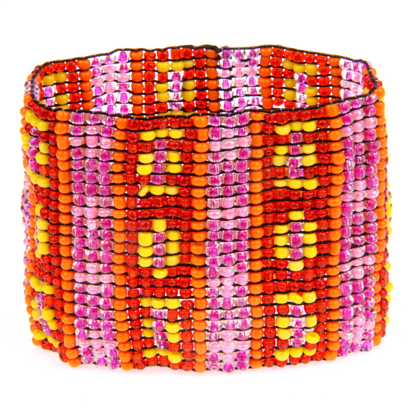 Museo Beaded Stretch Bracelet in Red, Orange, Pink.