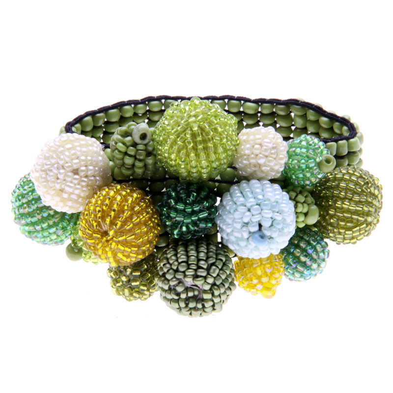 Barnacle style stretch cuff bracelet, mixed sizes of beaded balls clustered on top.