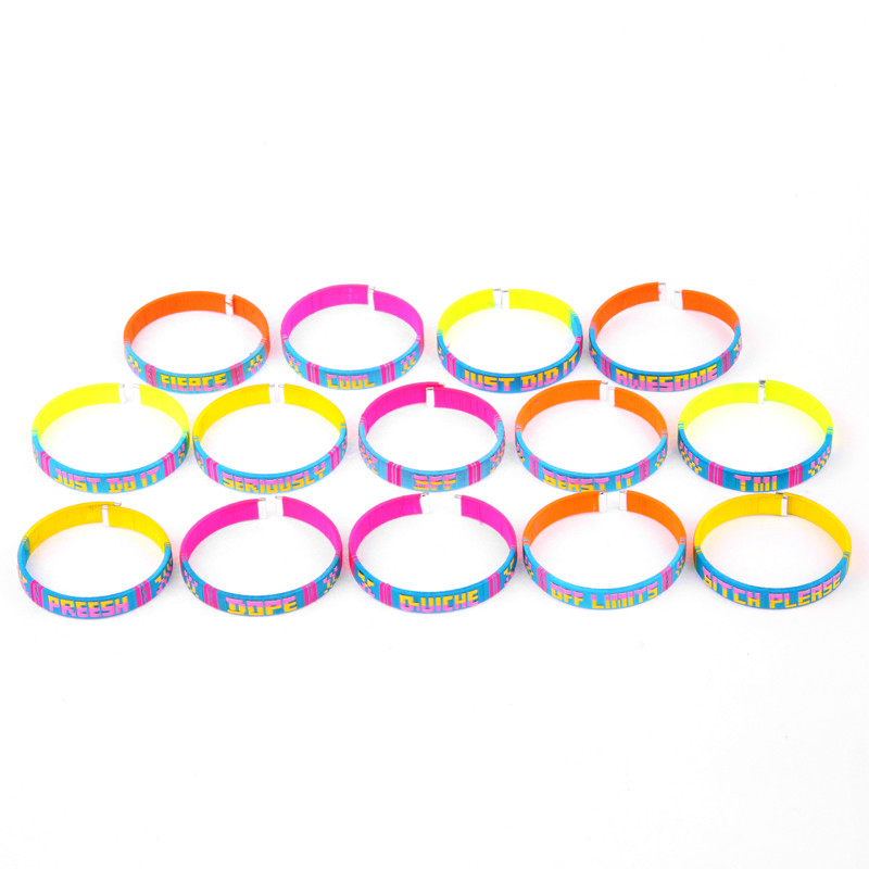 Assortment of 15 pcs $2.50 ea. SLANG 15 GROUP.(Photo of 14, some words repeat.) Assorted neon colors.