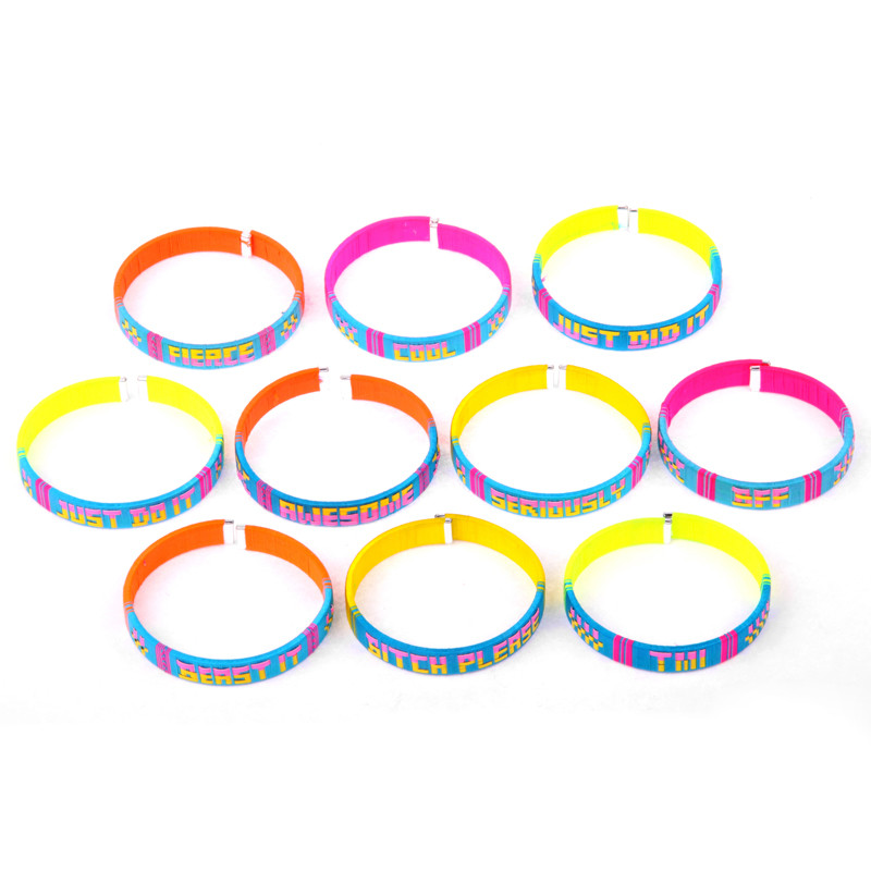 Assortment of 12 pcs $2.50 ea. SLANG 12 GROUP. (Photo of 10, some words repeat.) Assorted neon colors.