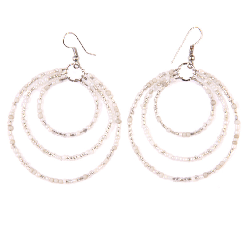 3 Circles Hoop Earrings in Mixed Silver, Cream, White.