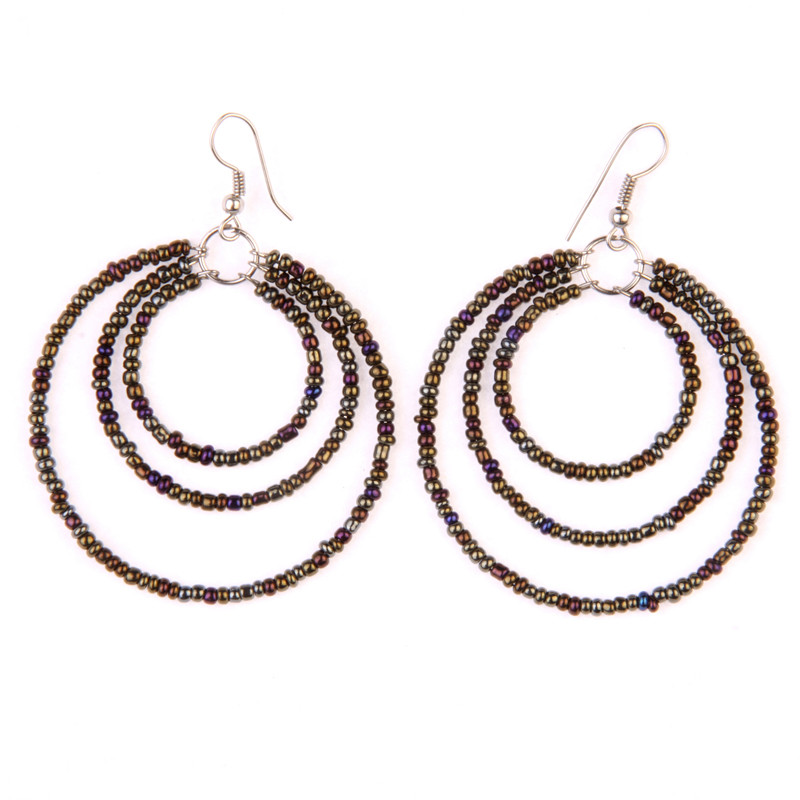 3 Circles Hoop Earrings in Mixed Pawa, Pewter.