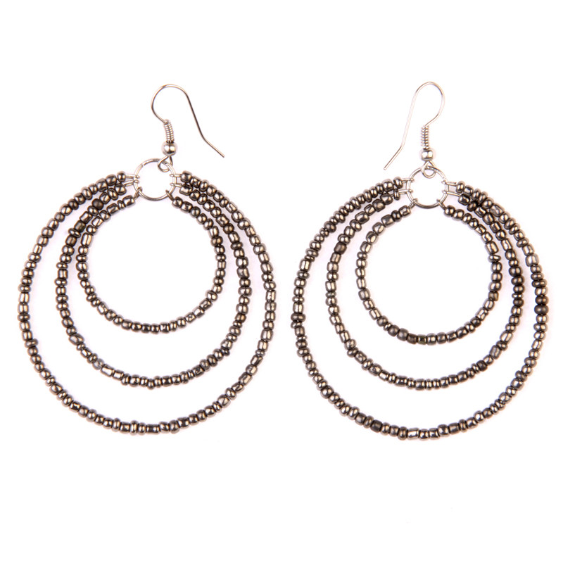 3 Circles Hoop Earrings in Mixed Pewter, Silver.