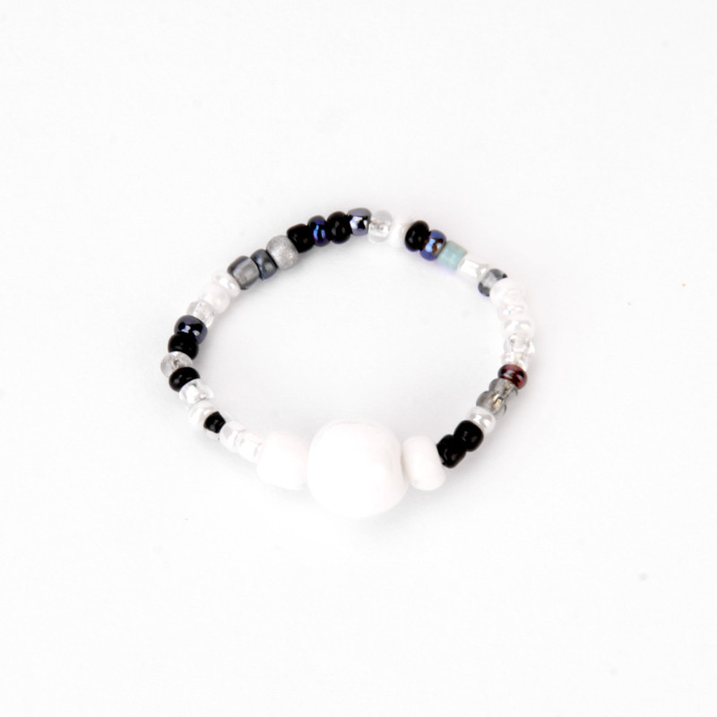 Beaded Ring w/ Java Center in Mixed Black, Grey, White.
