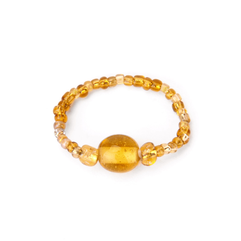 Beaded Ring w/ Java Center in Mixed Gold, Ambers.