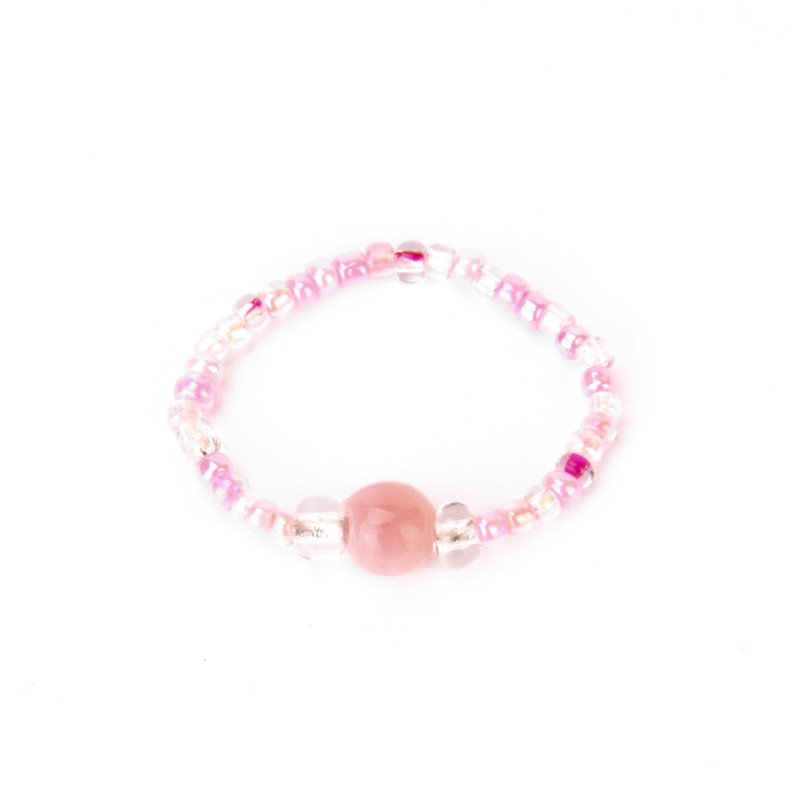 Beaded Ring w/ Java Center in Mixed Pink, Clear Silver.