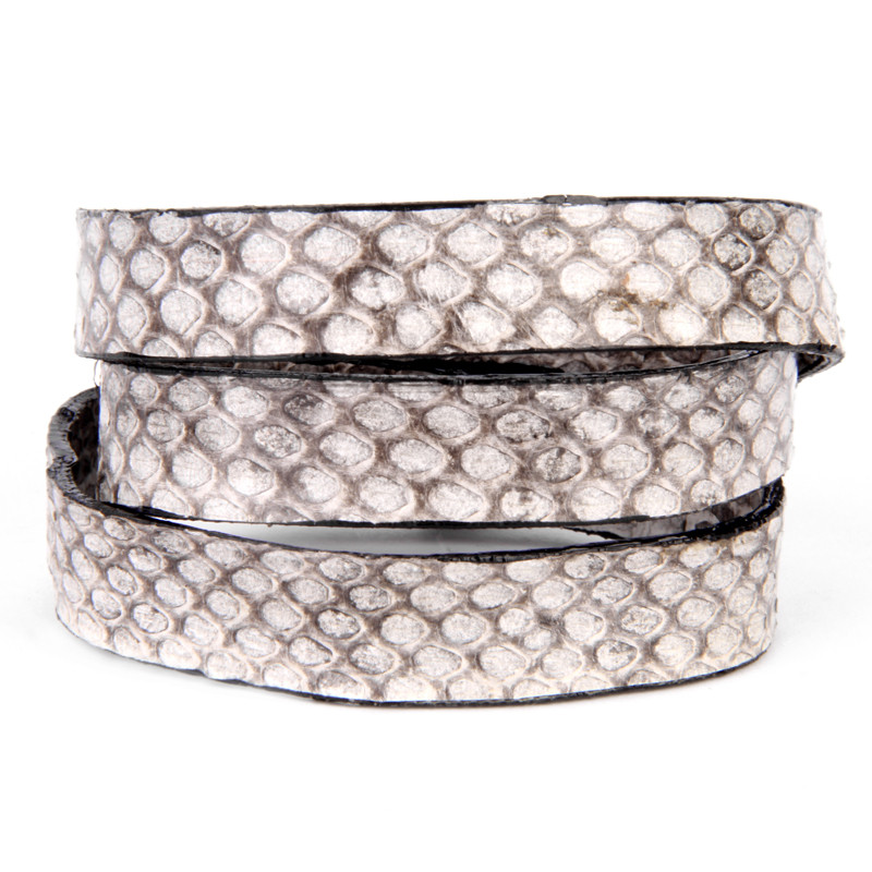 Triple Wrap, 2-Snap Snake Leather Bracelet in Cream.
