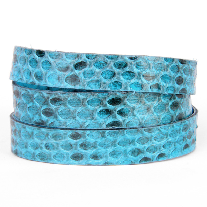 Triple Wrap, 2-Snap Snake Leather Bracelet in Turquoise.