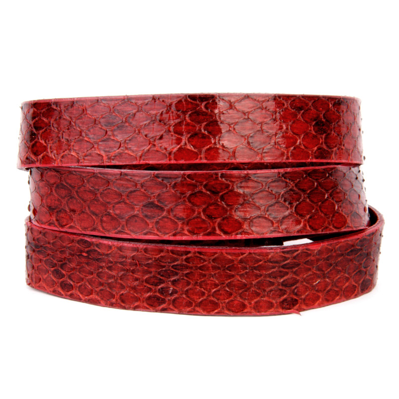 Triple Wrap, 2-Snap Snake Leather Bracelet in Red.