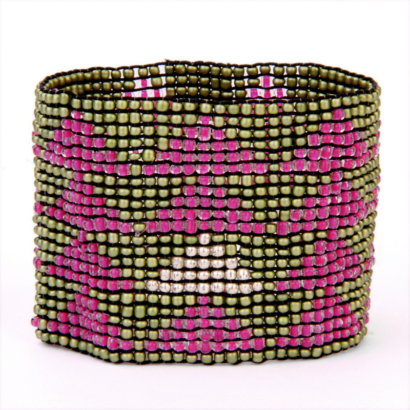 Triangle Pattern Beaded Cuff in Lime, Pink, Silver.
