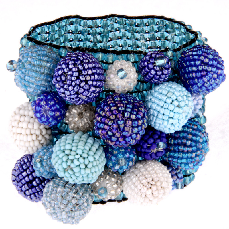 LG Barnacle Cuff in Mixed Blues, on Clear Turquoise.