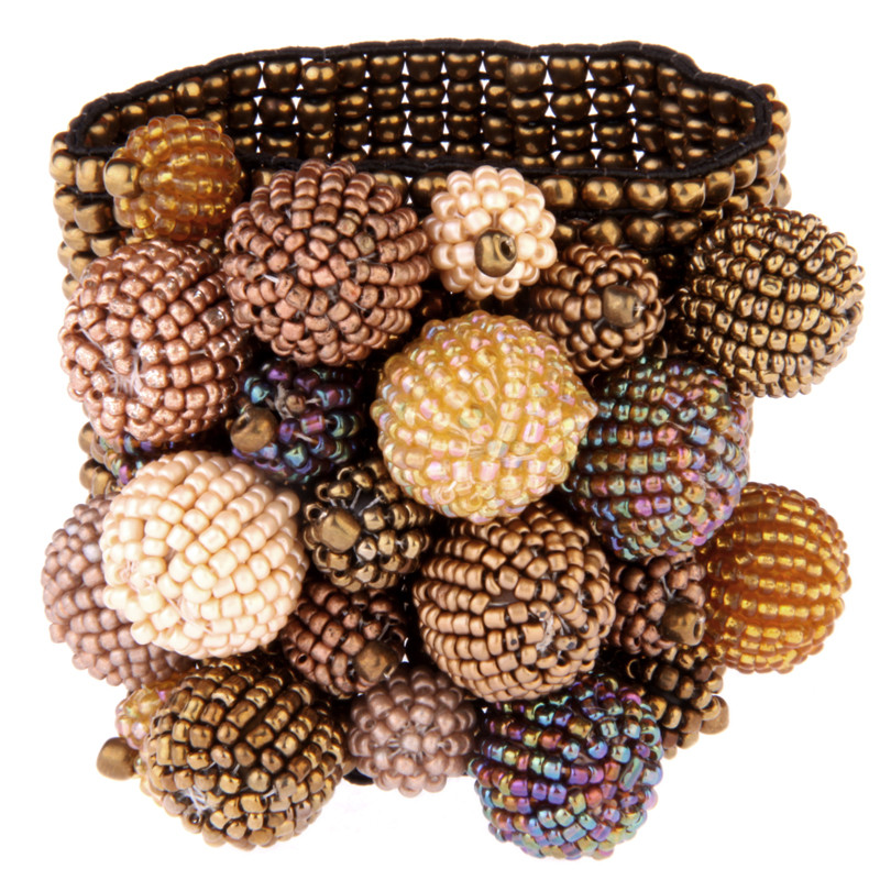 Barnacle style stretch cuff bracelet with mixed sizes of beaded balls