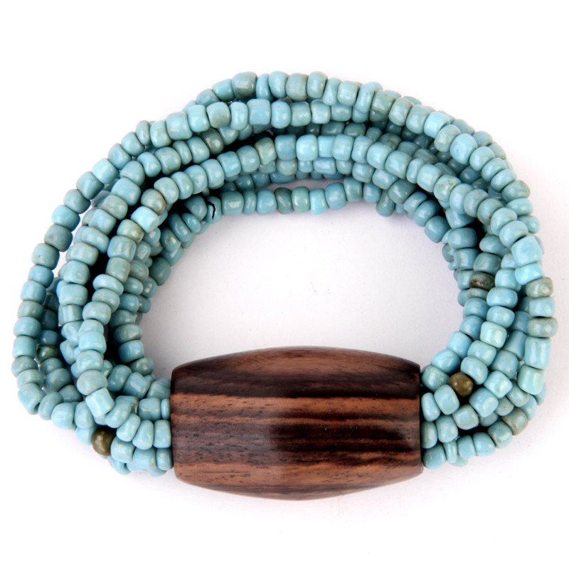 Multi-Strand Wood Barrel Bracelet in Antiqued Turquoise.