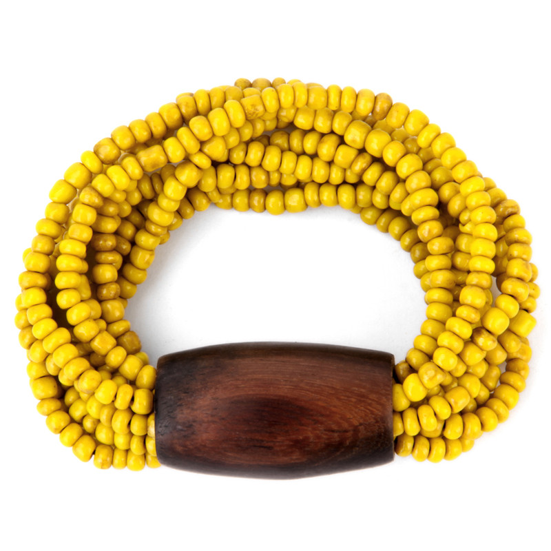 Multi-Strand Wood Barrel Bracelet in Antiqued Yellow.