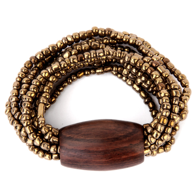 Multi-Strand Wood Barrel Bracelet in Bronze, Wood.