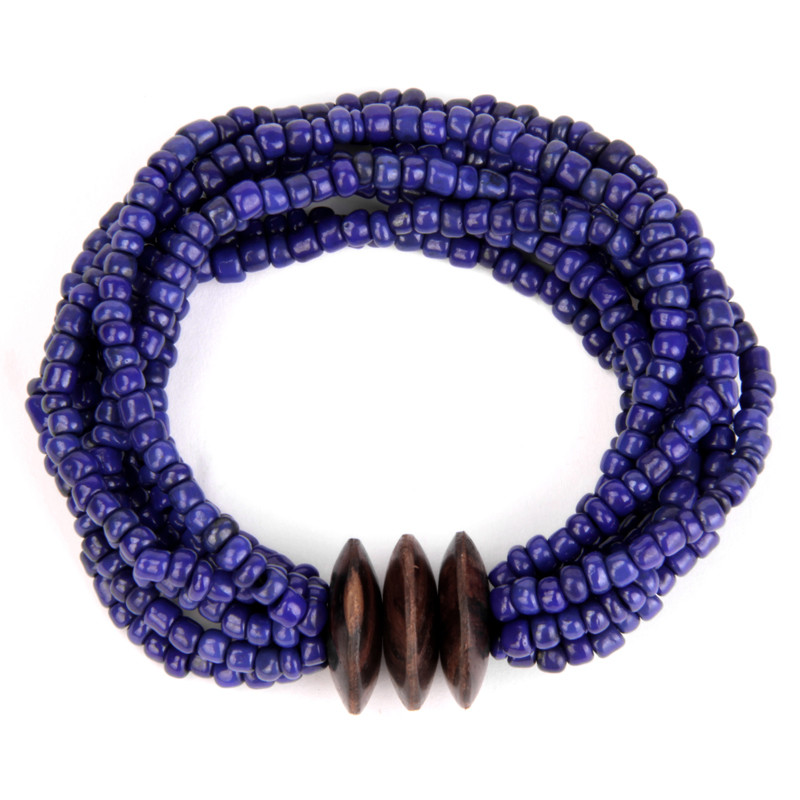 Multi-Strand Wood Triple-Disc Bracelet Antiqued Navy.
