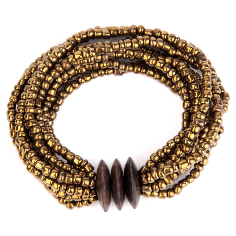 Multi-Strand Wood Triple-Disc Bracelet bronze.