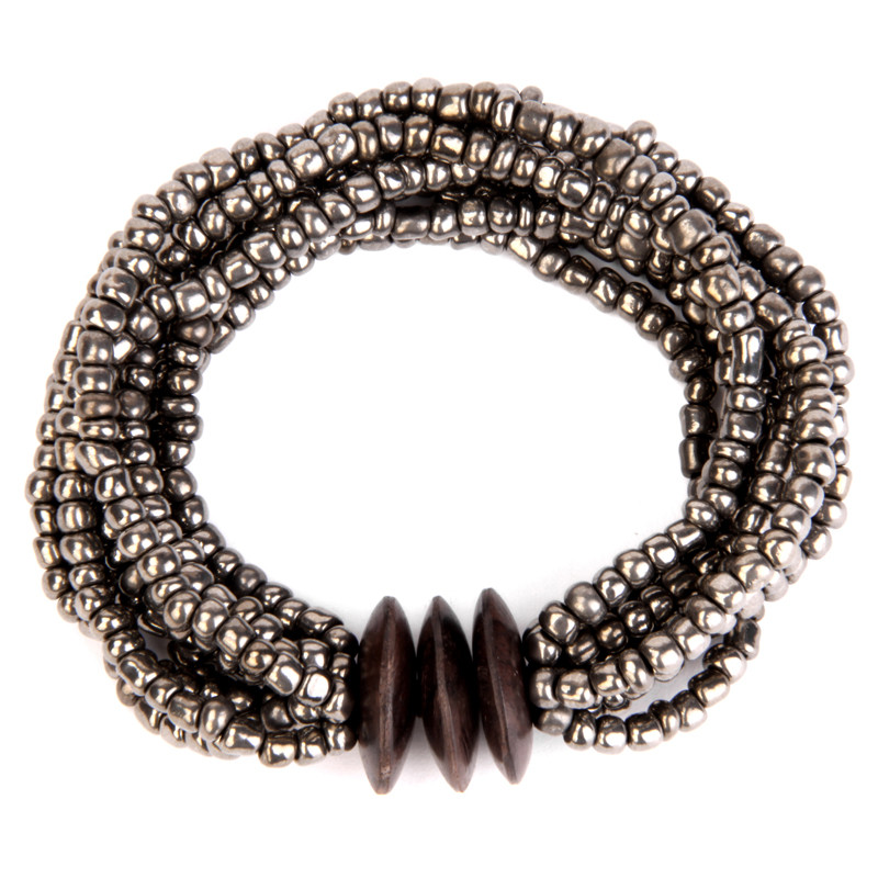 Multi-Strand Wood Triple-Disc Bracelet pewter.