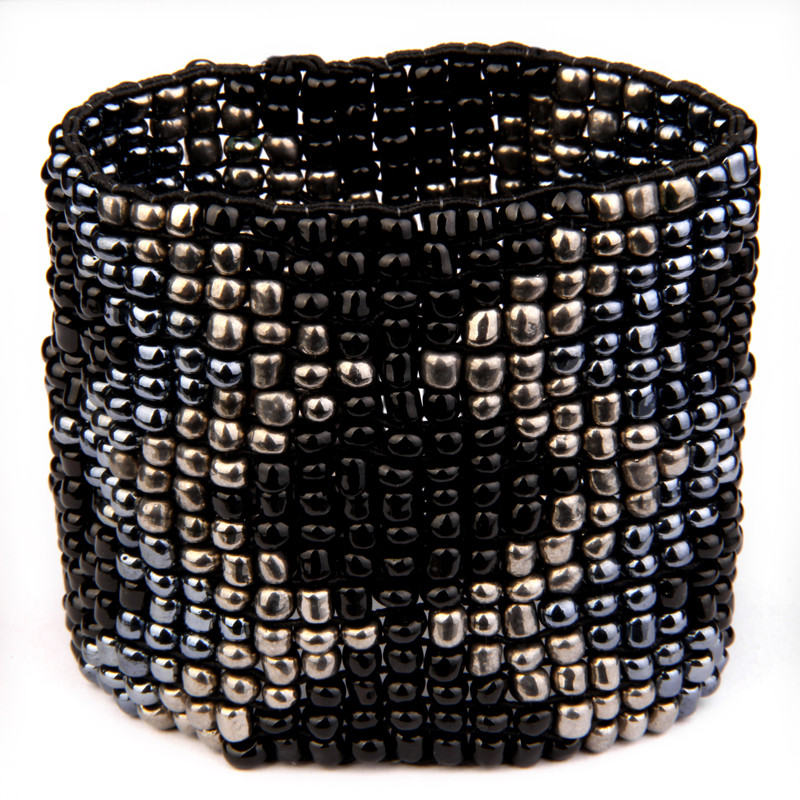 Diamond Pattern Cuff in Black, Pewter.