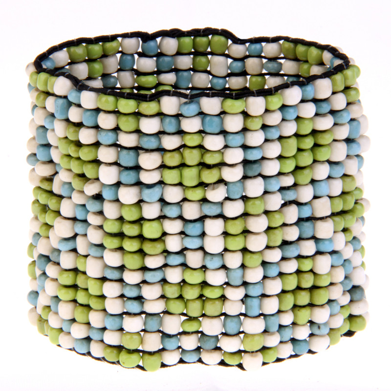 Triple Diamond Cuff in Antiqued Lime, Turquoise, White.