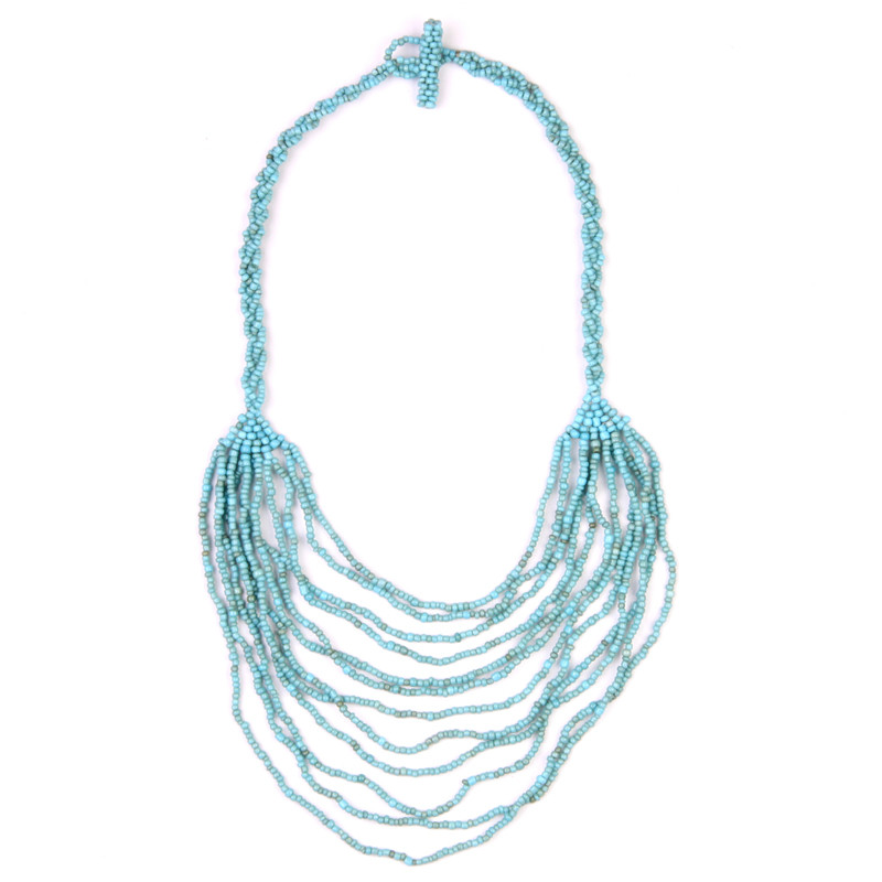 Mini Cascade Beaded Necklace in Antiqued Turquoise.
