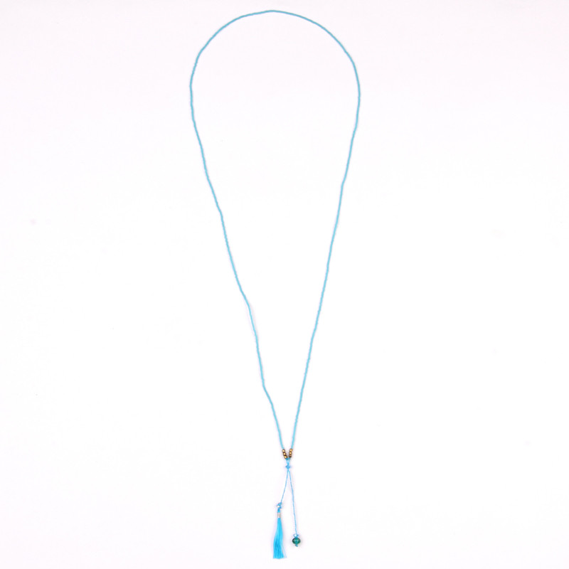 Beaded Tassel Necklace in Turquoise, Bronze.
