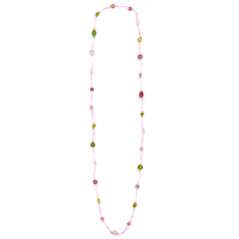 Java Squash Bead Necklace in Clear Lime, Pink.