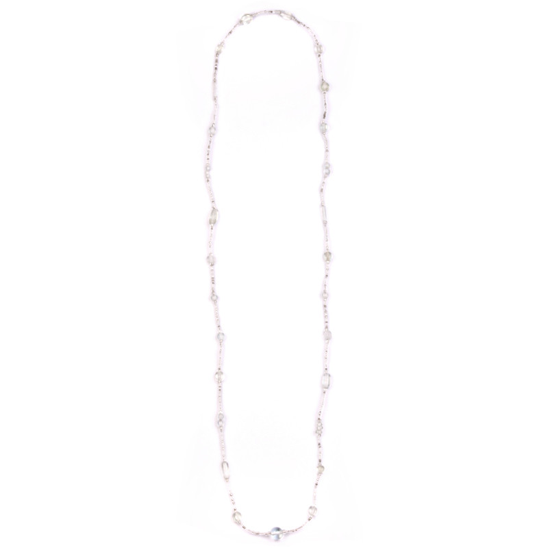 Java Squash Bead Necklace in Clear Silver.