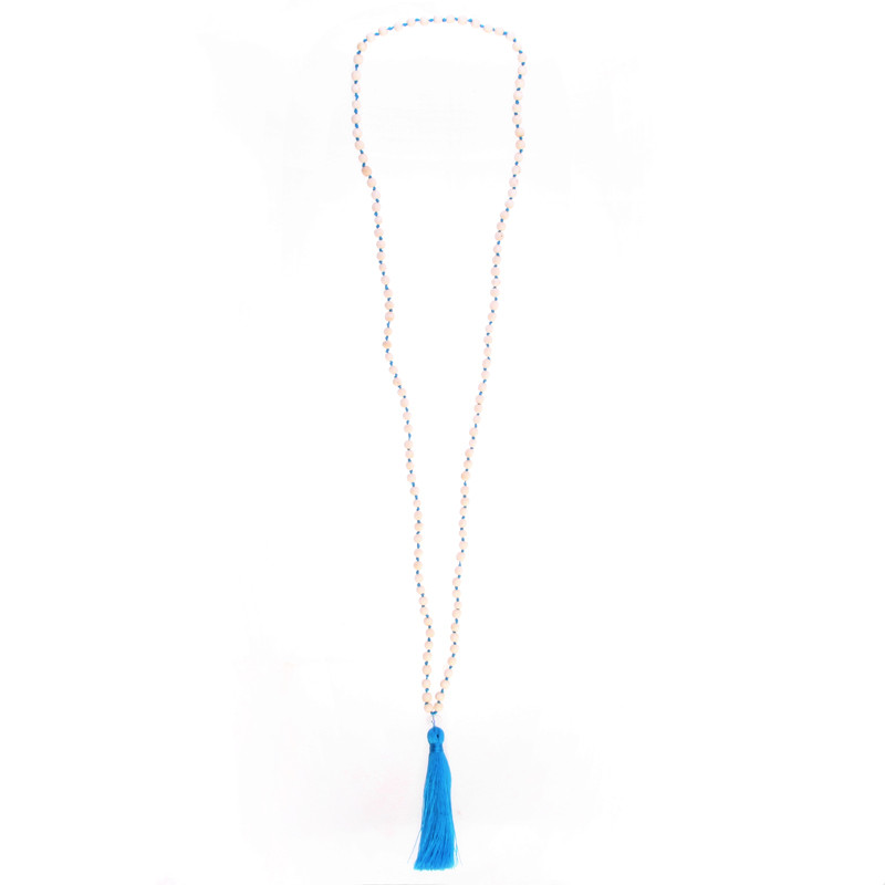 Wood Bead & Tassel Necklace, Cream, Turquoise.