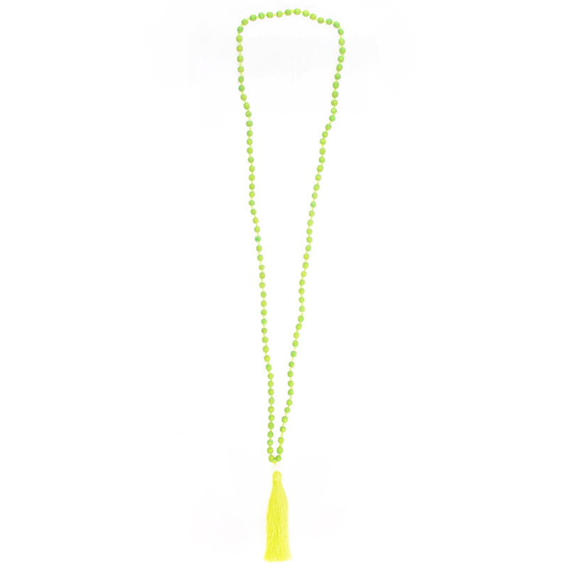 Wood Bead & Tassel Necklace, Lime ,Yellow, Clear.