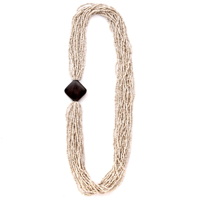 Multi-Strand, Wood Diamond Necklace in Antiqued Cream.