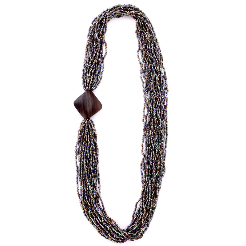 Multi-Strand, Wood Diamond Necklace in Pawa, Pewter.