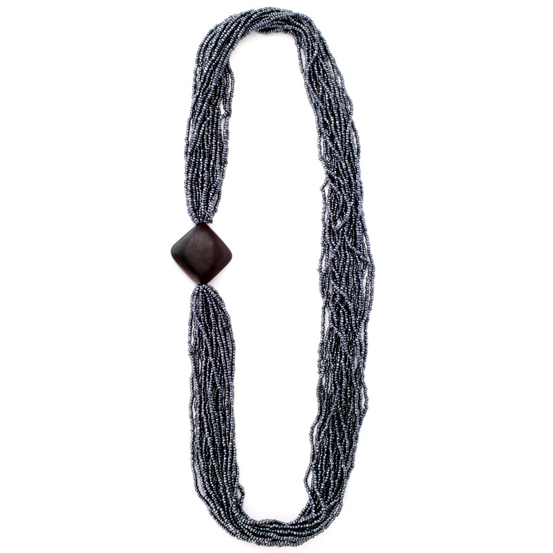 Multi-Strand, Wood Diamond Necklace in Gunmetal.