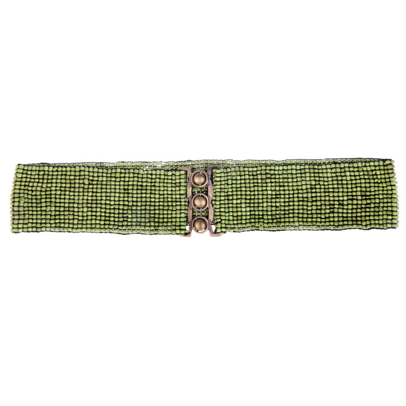 Solid Stretch Belt w/ Brass Buckle in Antiqued Lime.
