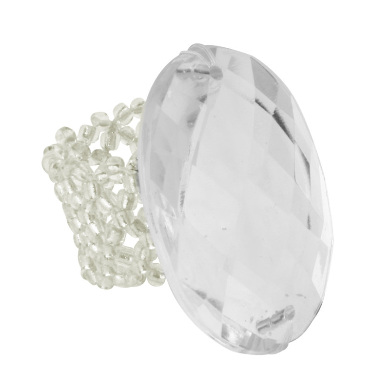 Faceted faux gem stone ring with beaded stretch band.