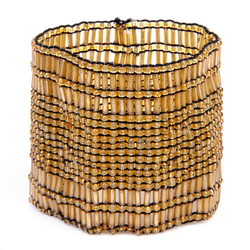 Bugle framed seed bead stretch bracelet. 2 rows glass bugle beads frame seed bead rows.