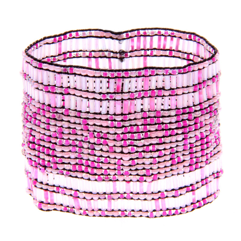 Bugle framed seed bead stretch bracelet. 2 rows glass bugle beads frame seed bead rows.
