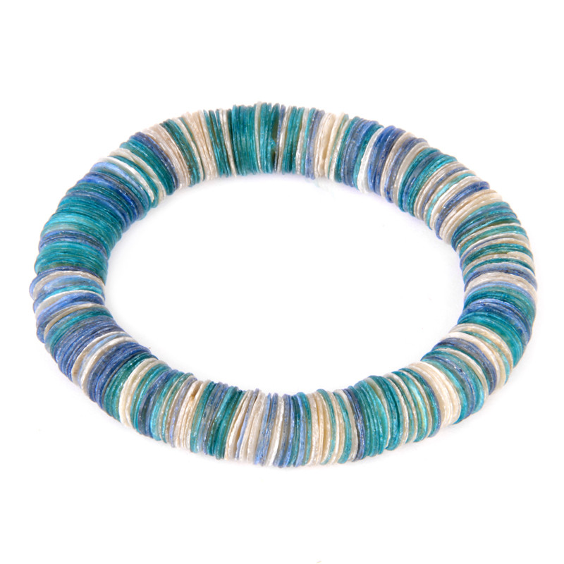 Capitz shell stretch bracelet. Made of hundreds of hand dyed and cut capitz shell discs.
