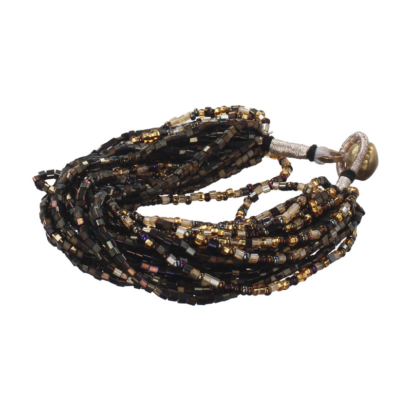24 Strand Czech Glass Bracelet in Mixed Brown.