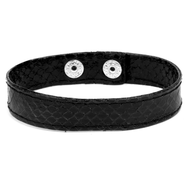 Narrow Strap 2-Snap Snake Skin Cuff in Black.