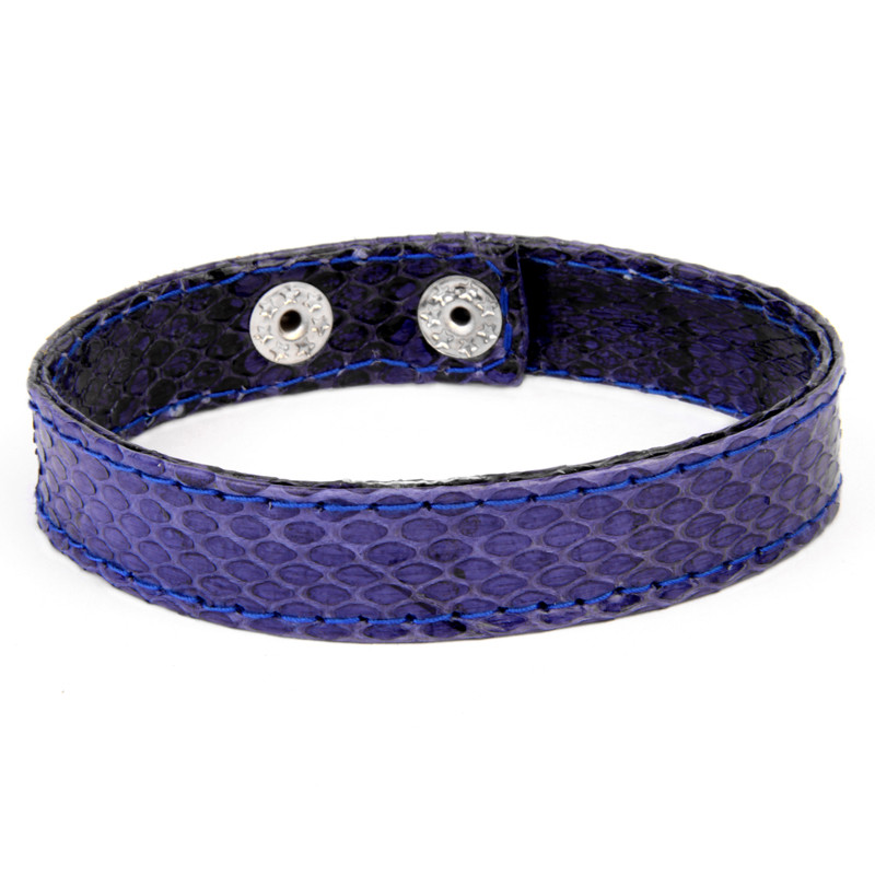 Narrow Strap 2-Snap Snake Skin Cuff in Navy.