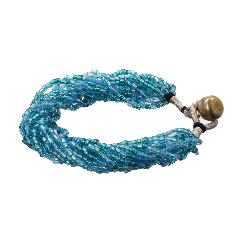 12 Strand Czech Glass Bracelet in Mixed Blues.