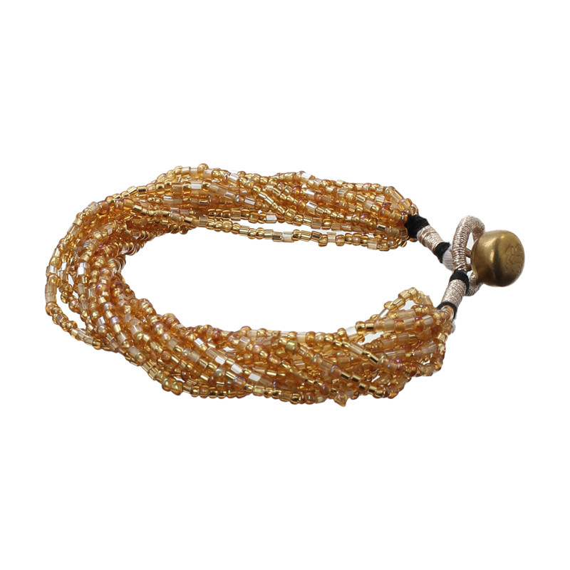 12 Strand Czech Glass Bracelet in Mixed Gold.