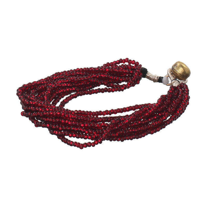 12 Strand Czech Glass Bracelet in Mixed Reds.